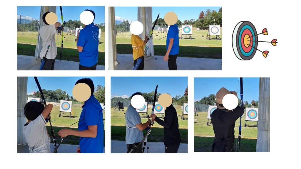 そして!!子どもたちが楽しみにしていたアーチェリーは…最初はやっぱり難しい💦💦