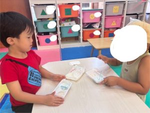 初めての経験に初めての味に少しびっくりしたお顔のお子様もいましたよ。