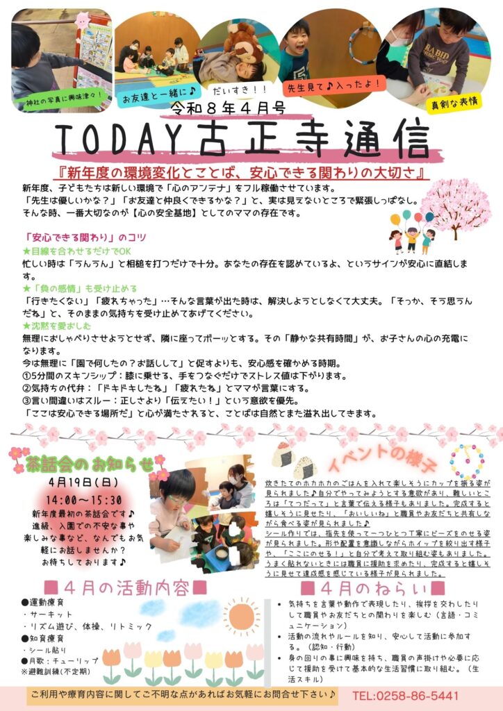 【TODAY古正寺】新年度の環境変化とことば、安心できる関わりの大切さ